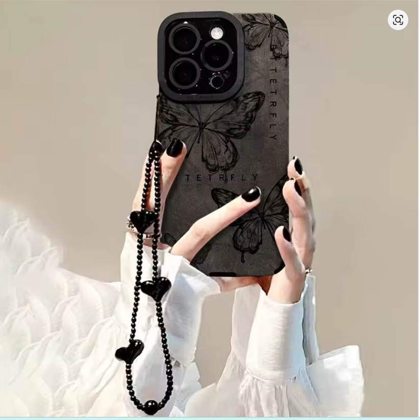 Your midnight alter ego, wrapped in a case. A deep-black butterfly sketch glows softly like moonlight on velvet, made for the girl who turns darkness into elegance